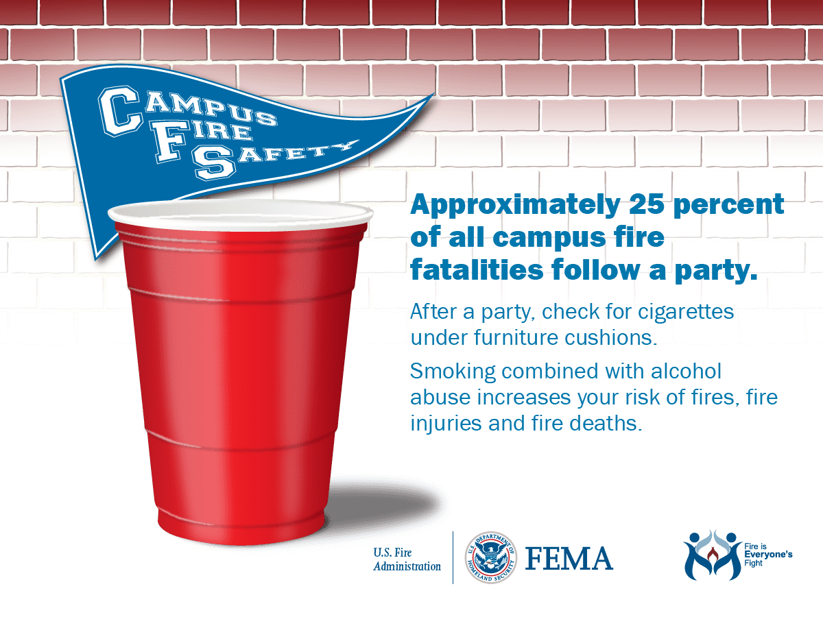 Almost all (94 percent) fatal campus fires occur off-campus. Alcohol is a factor in three-quarters of fatal campus fires.