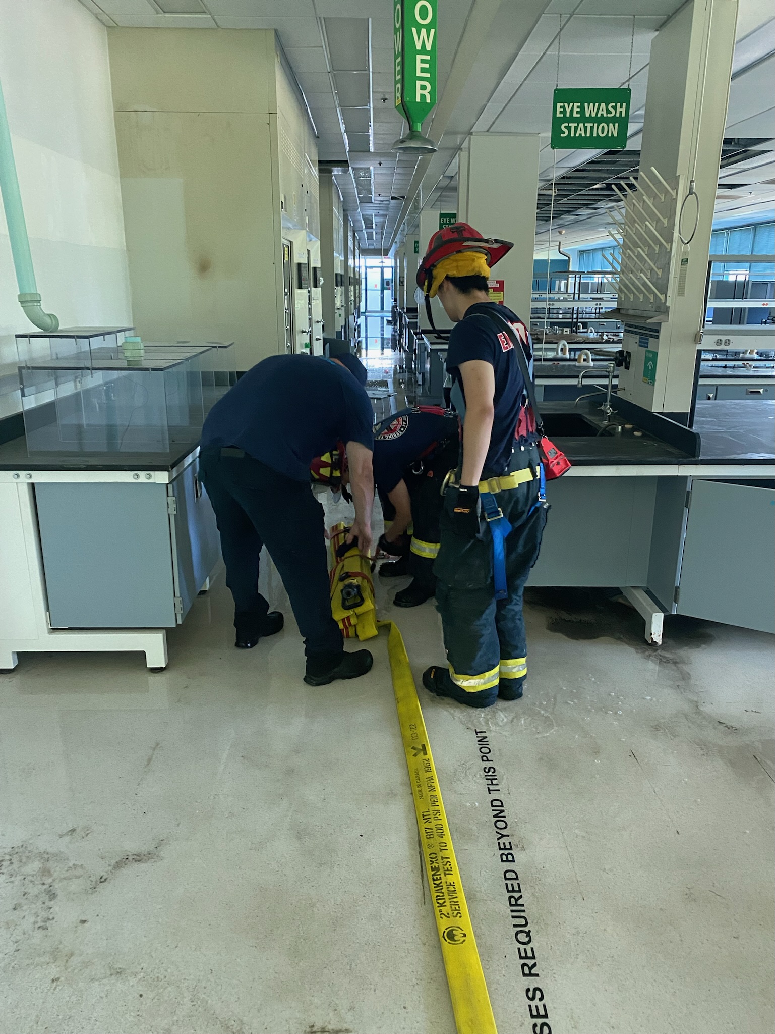 Over the past weekend, the Suffern Fire Department had a unique opportunity to conduct training with instructors from the Connecticut Custom Fire Training LLC. at the old Novartis Property. Veteran instructors, with decades of firefighting experience, were able to give our firefighters invaluable hands-on training inside the vacant building. An Engine Company Operations classroom portion was followed up with hands on training in the topics of elevator rescues, forcible entry & thru the lock, standpipe operations, and hose line advancement. A big thank you to the knowledgeable instructors, and the owners of the property for giving us such an invaluable opportunity!